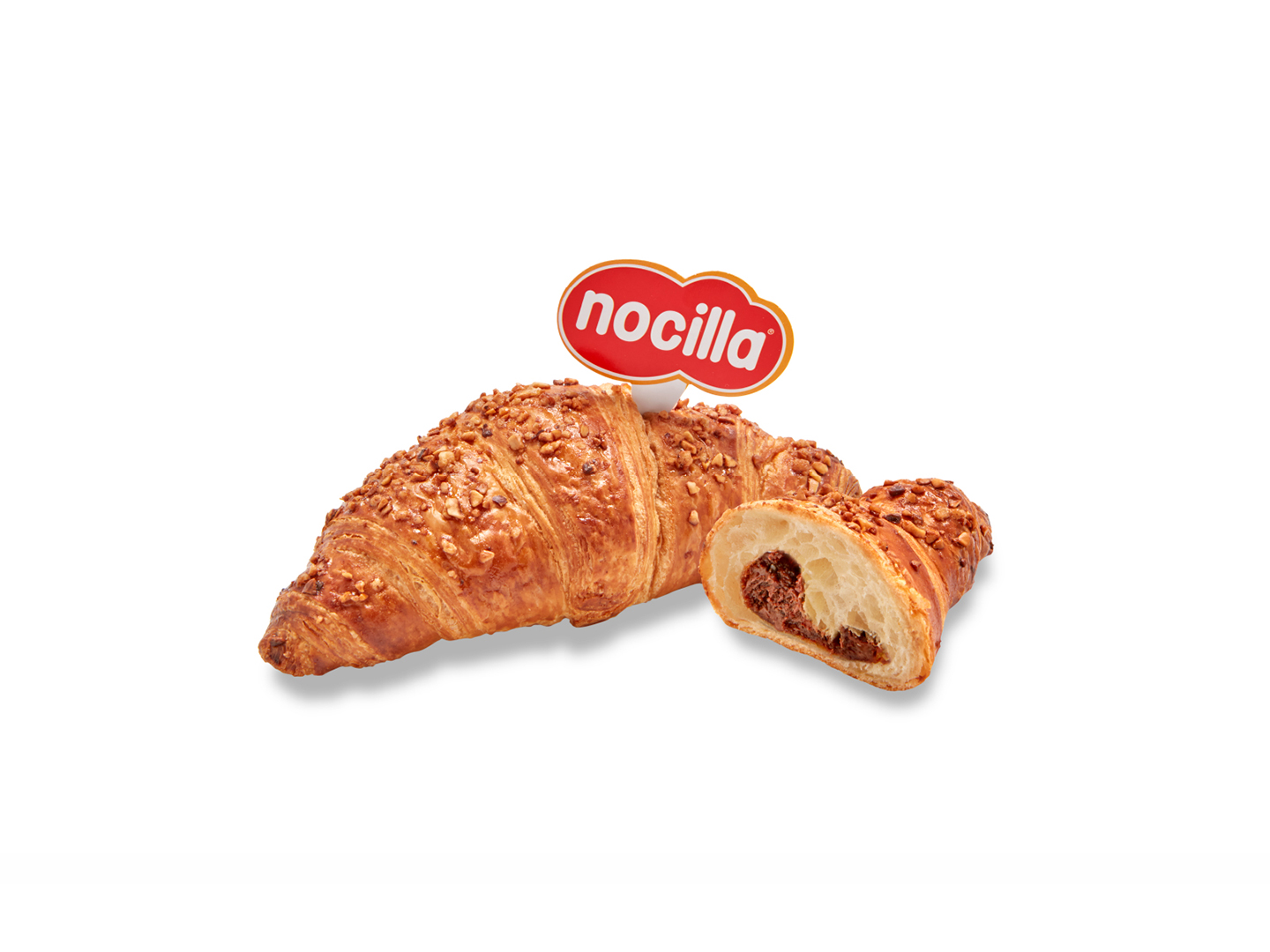 Deliciosa croissant rellena con pasta de avellanas, cubierto de un delicado topping de trocitos de avellana garrapiñada